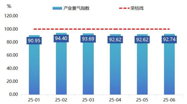 2025年上半年,浦江水晶产业景气指数持续位于荣枯线下方运行。指数运行如下图所示: